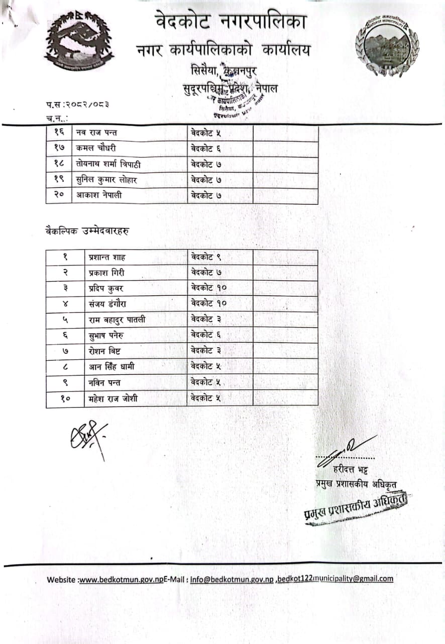 अ न मि पदको अन्तिम नतिजा प्रकाशित गरिएको सूचना।