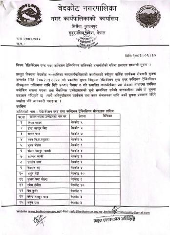 » एयर कण्डिसन टेक्निसियन तालिमका लागी छनोट भएका उम्मेदवारहरुको नामावली प्रकाशन सम्बन्धी सूचना।