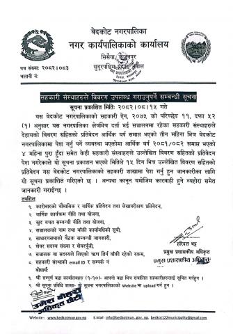 सहकारी संस्थाहरुले विवरण उपलब्धपर्ने सम्बन्धी सूचना ।