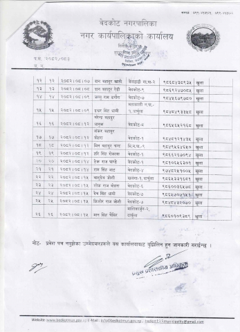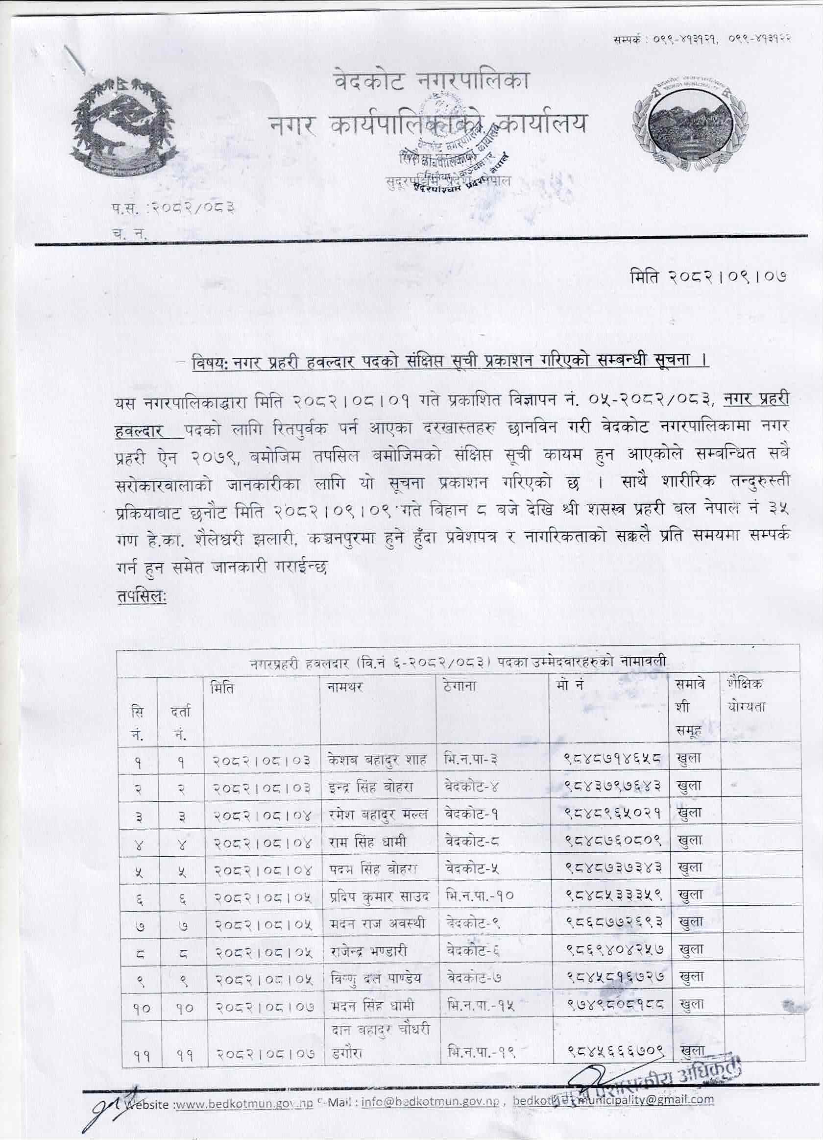 नगर प्रहरी हवल्दार पदको संक्षिप्त सूची प्रकाशन गरिएको सम्बन्धमा।