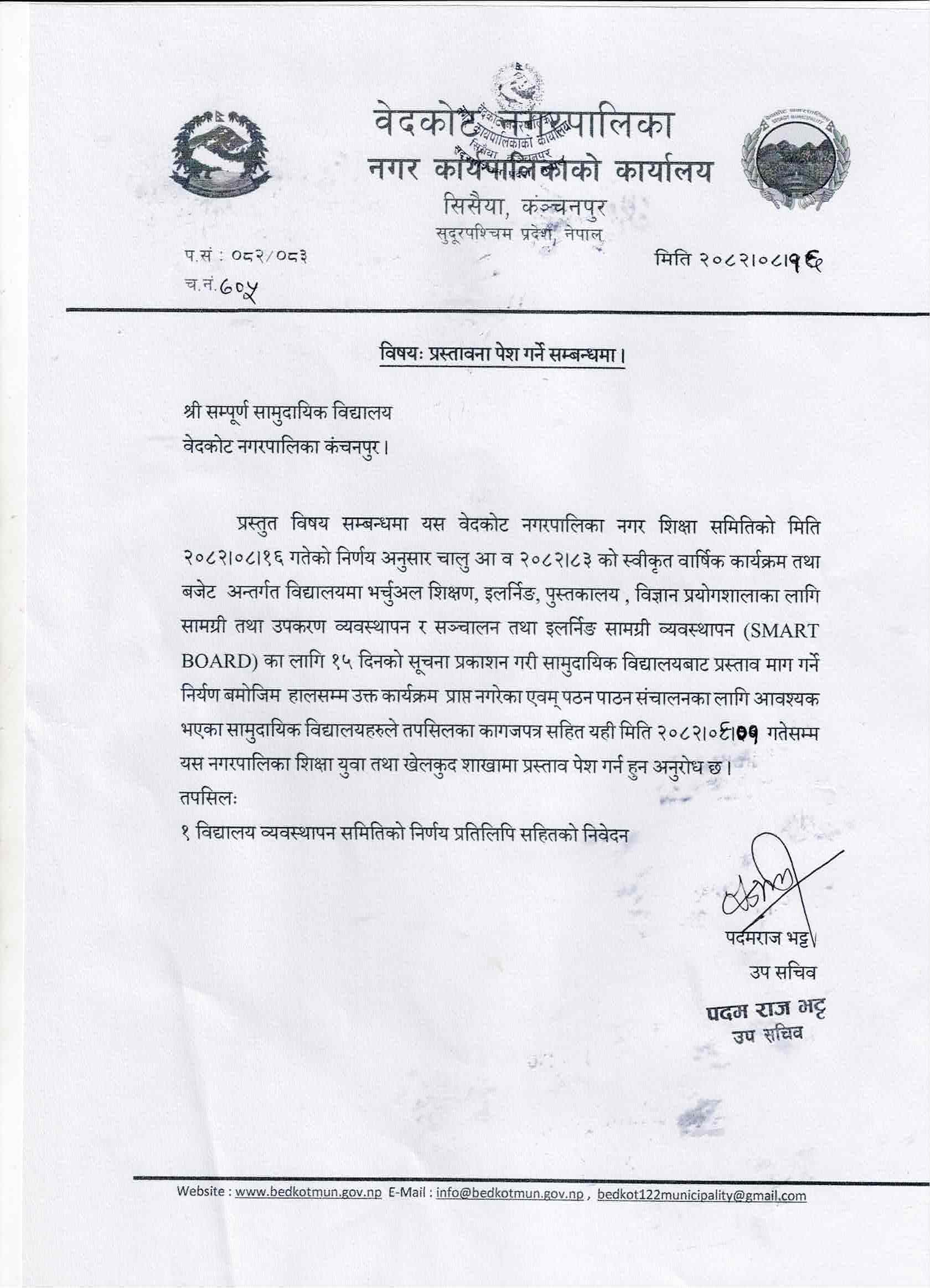 प्रस्ताव पेश गर्ने सम्बन्धी सूचना