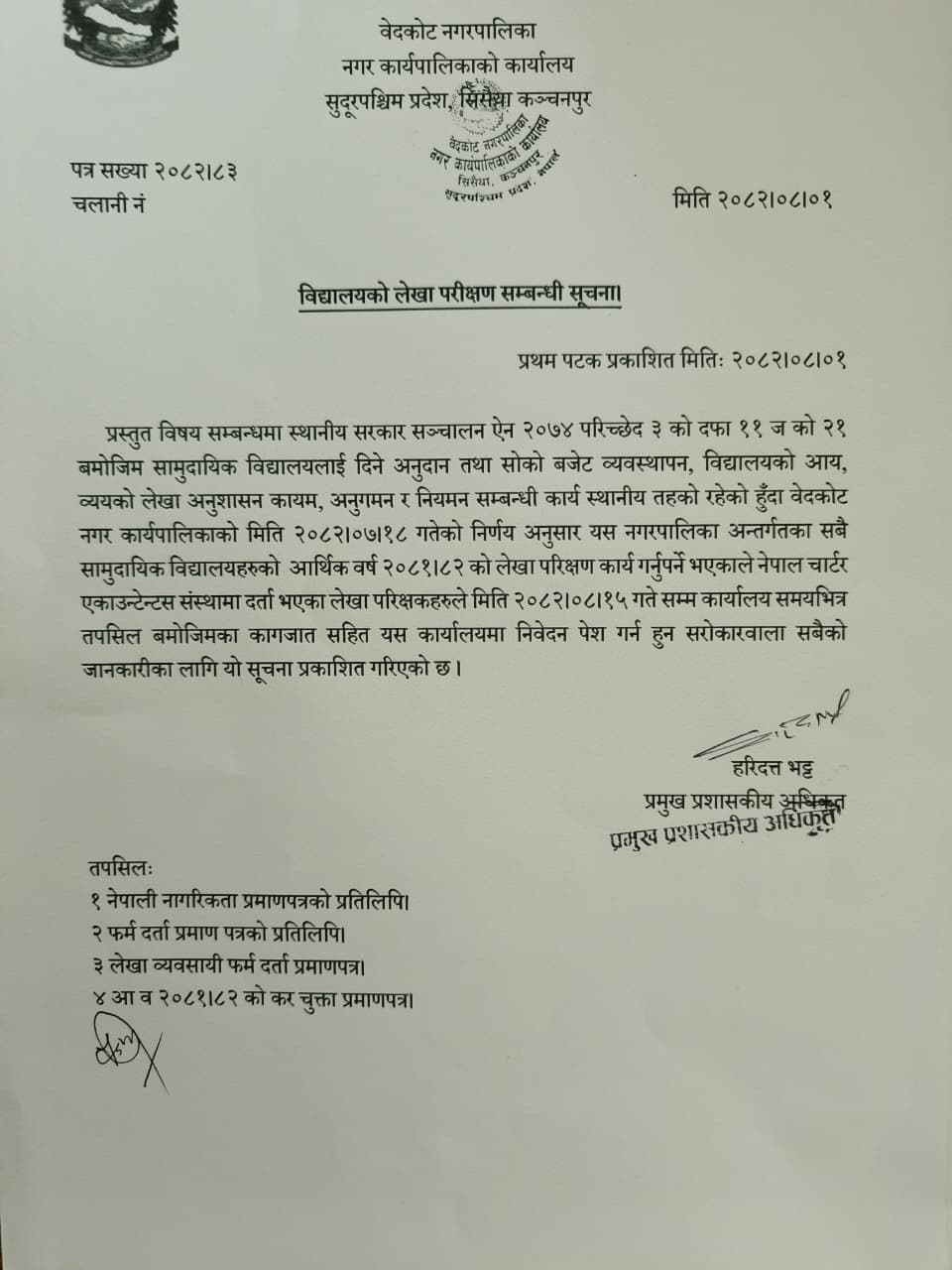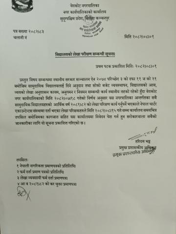 विद्यालयको लेखा परिक्षण सम्बन्धी सूचना ।।