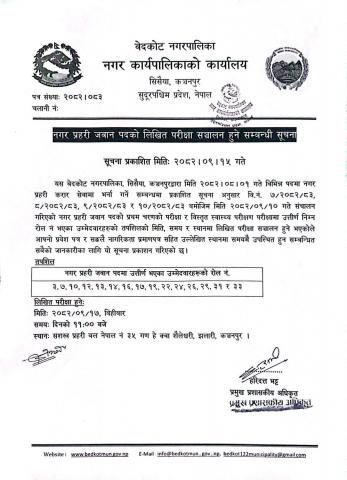 नगर प्रहरी जवान पदको लिखित परीक्षा संचालन हुने सम्बन्धी सूचना।