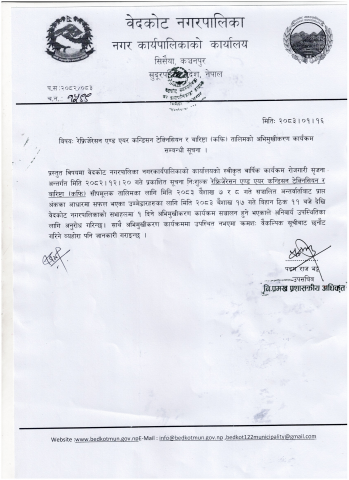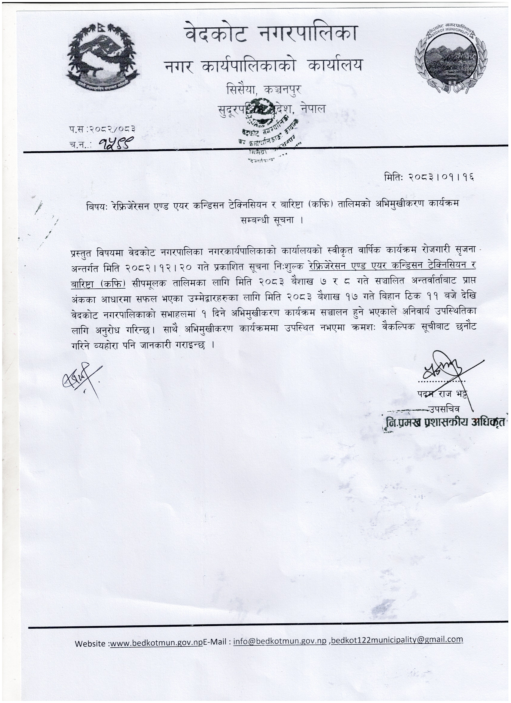रेफ्रिजेरेसन एण्ड एयर कन्डिसन टेक्निसियन र बारिष्टा तालिमको अभिमुखिकरण सम्बन्धी सूचना।